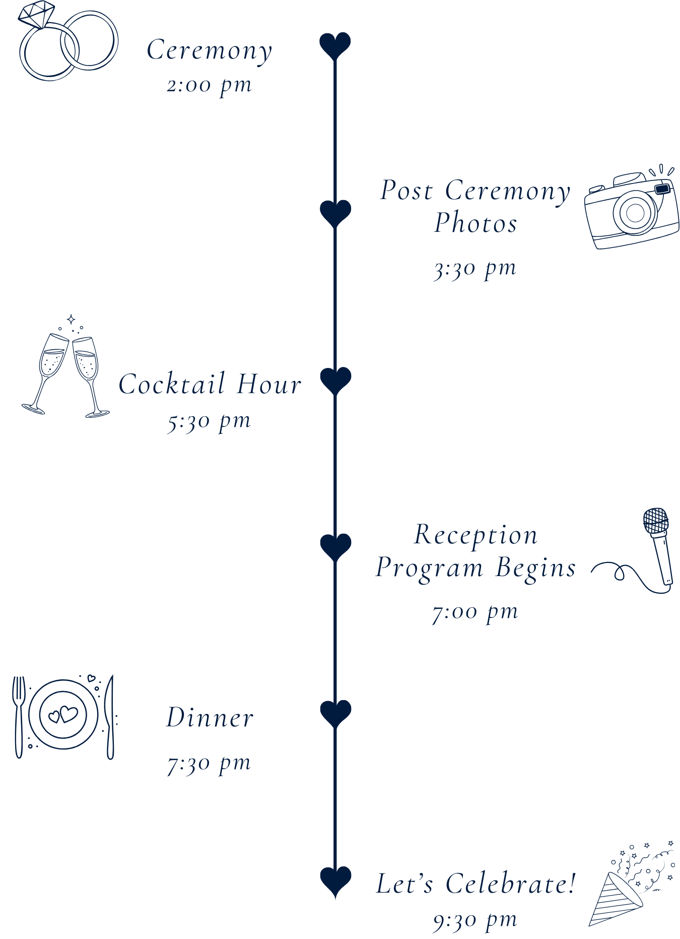 We recommend coming by 1:45 PM so you have time to settle in before the ceremony starts.